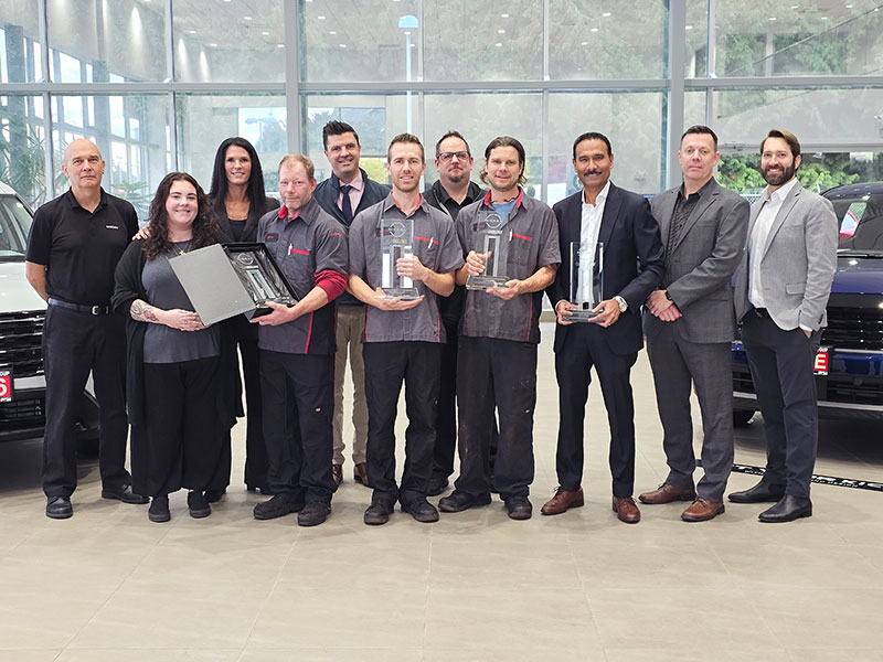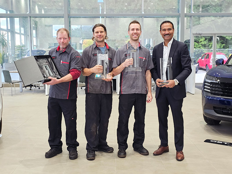 From left to right: Dean Bendickson(Nissan Certified Technician), Eddie Krajsek(Nissan Certified Technician), and Patrick Stankiewicz(Nissan Certified Technician), Wilson Bhatti(Lease Manager) — and a big congratulations as well to Ali Abdul Saboor(Assistant Sales Manager), who couldn’t make it for the photo but is also one of our 2025 Club Excellence Winners!